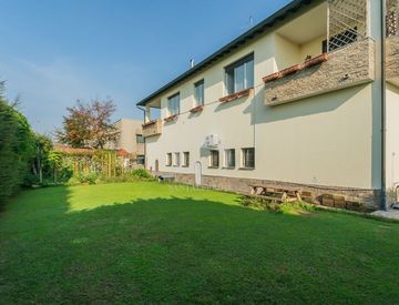 L'abitazione è valorizzata da un giardino di circa 350 mq, disposto a "L". Uno spazio riservato, interno e completamente piantumato, che offre un contesto verde ordinato e piacevole, pensato come naturale prolungamento dell'abitazione.