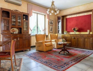 L’appartamento al primo piano accoglie con un grande salone doppio con camino, perfetto per vivere e ricevere ospiti.
