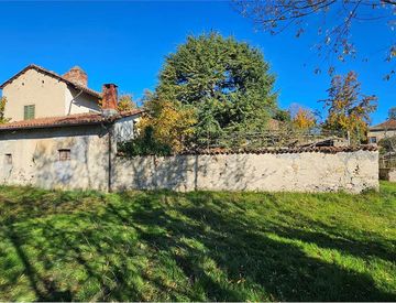 La proprietà si sviluppa all'interno di un grande giardino recintato, caratterizzato da alberi importanti, tra cui un pino maestoso che domina la corte, e da due ulteriori lotti di terreno adiacenti che, insieme, portano l'area esterna a circa 2.600 mq. Un vero spazio verde nel cuore del paese, con atmosfera d'altri tempi. Tutti i servizi sono già presenti: metano, acqua, elettricità, telefono e fognature.