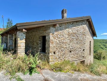 A un'altitudine di circa 700 metri, proponiamo questo casale in pietra su due livelli con terreno antistante di proprietà e una vista panoramica sulle colline boschive.
