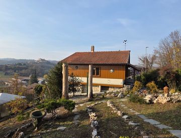 MONTALDO Torinese-Via Chieri: Casa indipendente in posizione dominante e soleggiata con splendida vista sulle colline e sul castello di Pavarolo. La casa è libera su quattro lati con ampio giardino privato di mq 1600 c. a. , ornato da rigogliose piante e fiori. La posizione è ottima per godere degli spazi verdi in tranquillità e privacy.