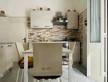 La soluzione, caratterizzata da volte in pietra leccese, si compone di due ampi vani, una cucina e un cortile privato retrostante.