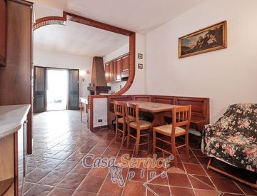 L'ingresso alla proprietà, avviene tramite un ingresso a piano terra, dove troviamo una zona living e angolo cottura, camino e un bagno, da una scale interna saliamo al primo piano dove troviamo due camere da letto e un altro bagno. Area solare di eclusiva proprietà.
