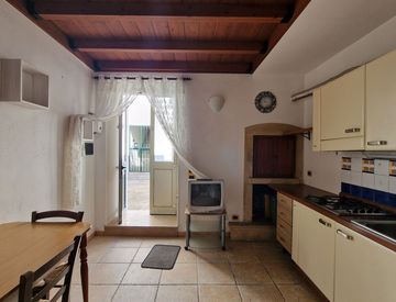 All'interno, troverai un angolo cottura funzionale e un servizio ben curato. La vera chicca è il soppalco in legno che ospita una camera da letto intima e confortevole. La copertura con volta in conci di pietra leccese faccia a vista aggiunge un tocco di autenticità e fascino storico all'ambiente.