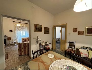 L'immobile è luminoso e spazioso, dall'ingresso si accede ad un ampio corridoio, che serve il soggiorno-salotto, zona pranzo con camino e cucina separata con porta finestra verso il giardinetto.