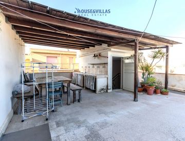 Infine, al piano superiore, troviamo un grande terrazzo con una copertura in legno, che offre uno spazio ideale per momenti di relax all'aperto, cene con amici o semplicemente per godere della vista sulla città. La presenza di una cucina in muratura rende questo terrazzo perfetto per vivere all’aperto anche nei mesi più caldi, creando un ambiente accogliente e funzionale.