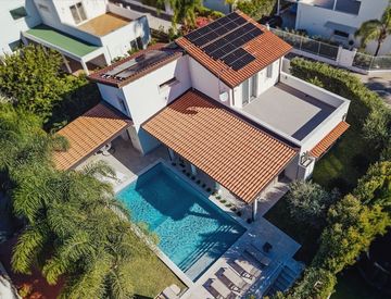 Gli spazi esterni rappresentano uno dei punti di forza della villa: il giardino, curato e ben organizzato, ospita una splendida piscina e un elegante portico attrezzato, creando un contesto ideale per momenti di relax e convivialità.