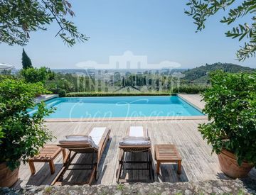 Il giardino, curato con grande attenzione, ospita una piscina panoramica con vista mare e ampi spazi per vivere appieno l’esterno durante tutto l’anno, immersi nella quiete della campagna e circondati da un incantevole panorama.