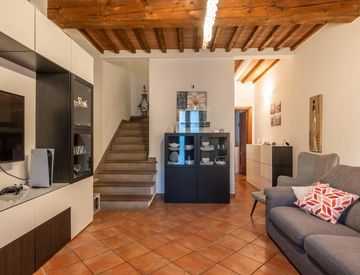 Varcato l'ingresso indipendente al piano terra, si accede direttamente al luminoso soggiorno. Da qui, un disimpegno conduce al primo bagno e alla cucina, che offre accesso diretto al resede esclusivo: il luogo ideale per momenti di relax all'aperto. Salendo al piano superiore, troviamo il reparto notte con una spaziosa camera matrimoniale, una cameretta versatile e il secondo bagno con lucernario elettrico.