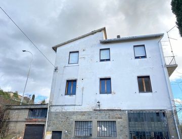 Castiglion Fiorentino: zona centrale vendesi casa singola con grande resede di pertinenza esclusiva. L'unita' immobiliare su tre livelli, piano terra composto da cucina, quattro camere, studio, bagno. Piano primo composto da cucina- soggiorno grande con terrazzo, tre camere di cui due con terrazzo e bagno. Piano seminterrato composto da grandi locali ad uso magazzino. Completano la proprieta' in corpo staccato mq. 35 ad uso magazzino e resede di pertinenza...