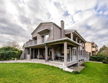 Esternamente la proprietà vanta vari spazi quali portici e patio adibiti ad aree relax e pranzo adatte ad ospitare più persone ed è circondata da un ampio giardino a prato curato e ben delimitato che può essere ulteriormente arredato in base alle proprie esigenze.