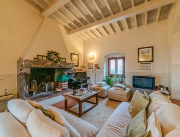 La proprietà si compone di 9 vani, tra cui un grande soggiorno doppio con camino, perfetto per accogliere momenti di relax e convivialità, e una cucina abitabile spaziosa. La zona notte include tre camere da letto, tutte ben illuminate e con ampi spazi, e tre bagni. Una camera da letto con il bagno si trovano al piano superiore.