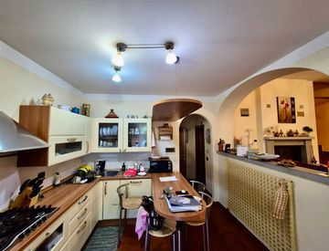 L'immobile è cosi composto: al piano terra zona giorno in open space con cucina e soggiorno con termocamino, con accesso resede tergale di proprietà esclusiva e panoramica di circa 50mq e servizio finestrato con vasca.