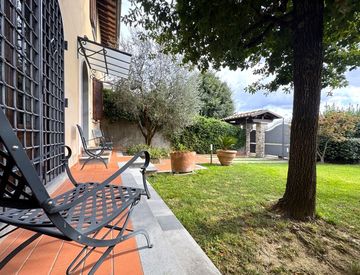 In zona residenziale, immersa nel verde e vicino a tutti i servizi, proponiamo in vendita ampia porzione di colonica, libera su due lati con giardino frontale e resede posteriore. L'immobile finemente ristrutturato è così composto: ingresso, sala con camino, cucina abitabile, soggiorno, studio, ripostiglio/lavanderia e servizio a piano terra; camera padronale, servizio con vasca idromassaggio e doccia, cabina armadio e terrazzo, due camere matrimoniali...