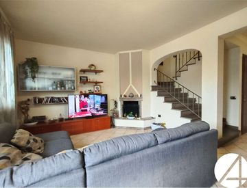 L'unità immobiliare è così composta: al piano terra troviamo un ampio soggiorno con camino, ideale sia per momenti conviviali che serate rilassanti, un cucinotto che si affaccia sulla sala da pranzo dalal quale è possibile accedere all'ampia terrazza. A completare questo piano troviamo un utile ripostiglio sottoscala.