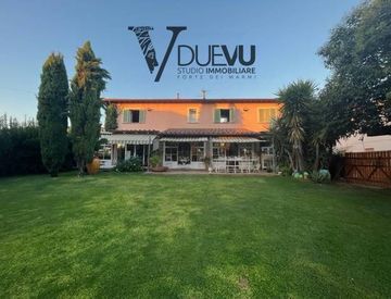 Bella VILLA a Querceta in zona tranquilla, a due passi dal centro e da tutti i servizi di prima necessità, con un bellissimo giardino, verande aperte e chiuse e posto auto. La villa è composta al piano terra da: ingresso in soggiorno con cucina a vista, veranda chiusa a vetri che si affaccia sul giardino e su altro portico aperto ed arredato con tavolo per pranzi o cene all'aperto. Piccolo ufficio o anticamera, camera matrimoniale con bagno, bagno...