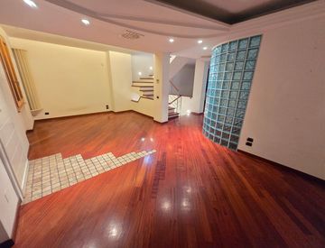Al piano terreno l’abitazione accoglie con un doppio soggiorno luminoso, una cucina abitabile, una sala da pranzo e un bagno. Il piano primo ospita tre camere da letto, di cui una matrimoniale con ampia cabina armadio e due singole, oltre a un bagno con vasca idromassaggio, una terrazza di circa 40 mq e due balconi.