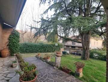 Acquasparta, in zona residenziale signorile, casa indipendente disposta su unico livello più una stanza al piano primo composta da: ingresso, salone con camino e soppalco con camera da letto, cucina abitabile, tre camere, studio, due bagni, lavanderia, portico e ampio giardino privato recintato con accesso pedonale e carrabile.