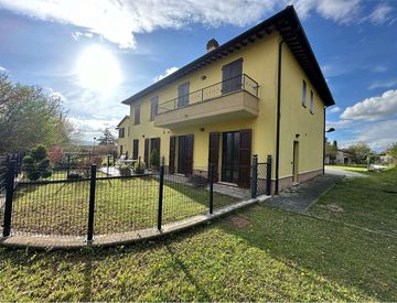 All'interno del nuovo complesso immobiliare tra GualdoTadino e Nocera Umbra, splendida questa villetta su due livelli, composta da soggiorno con cucina a vista, bagno e giardino. Garage con accesso diretto all'abitazione. Al primo piano, due camere matrimoniali e due singole, due bagni e ampio disimpegno. Le camere sono servite da ampi balconi che affacciano sulla campagna, attraversata dal fiume Fergia. Molto accogliente e luminosa, adatta per una...