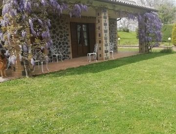 Orvieto (TR) località Buon Respiro, in posizione dominante Dista 8 Km da Orvieto e 6 km dal Lago di Bolsena lungo la Strada Statale 71 Terreno di 4 ha con sovrastante casale in pietra rifinito con materiali di pregio composto da casa padronale di Mq 180 c. a. con portico di Mq 30 c. a. e dependance di Mq 40 c. a. (unico ambiente) con camino e grotta. La casa padronale ha una superficie di Mq 180 c. a. su due livelli: piano terra composto da salone...