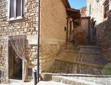 All'interno dello splendido borgo medievale, tipico cielo terra in ottime condizioni. L'abitazione si sviluppa su due livelli e si suddivide in: Piano terra: soggiorno con angolo cottura e caminetto, sala da pranzo e locale tecnico; Piano mezzanino: bagno; Piano primo: tre camere mansardate e bagno. La proprietà comprende ampia legnaia ad uso lavanderia e dispensa e tipica grotta. Ottime condizioni. Affaccio panoramico sulla vallata. Arredi di ottima...