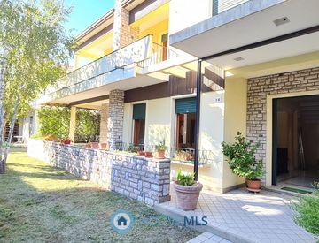 L'ingresso principale conduce ad un ampio soggiorno luminoso che si apre sulla sala pranzo; le grandi finestre offrono una vista sul verde del giardino e i pavimenti in marmo donano eleganza agli spazi. La cucina separata è attrezzata con caminetto a legna ed è accessibile sia dal soggiorno che dalla sala pranzo. Completano il piano terra un disimpegno, un bagno finestrato rifinito in marmo e un utile ripostiglio sottoscala.