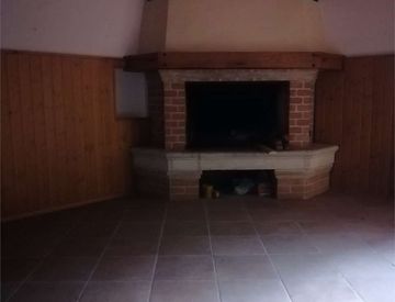 Piano terra ingresso e salotto, cucinotto e sala pranzo con caminetto, ripostiglio e bagno di servizio.