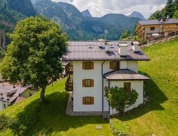 Due terrazzi soleggiati completano questa casa, affacciati sul panorama di Palue, tra luce naturale e silenzi rigeneranti. La posizione è davvero invidiabile: pur essendo isolata e riservata, la casa è comodamente accessibile, a due passi da Sottoguda con i suoi incantevoli Serrai e a soli cinque minuti d’auto dalla regina delle Dolomiti, la Marmolada.