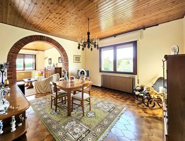 Al piano terra, direttamente collegate con l'interno della casa, troviamo seconda cucina, taverna, cantina/locale pluriuso, un'ulteriore stanza, bagno e centrale termica/ripostiglio. Comodo il giardino di questa proprietà, spazio ideale per essere sfruttato in tutte le stagioni.