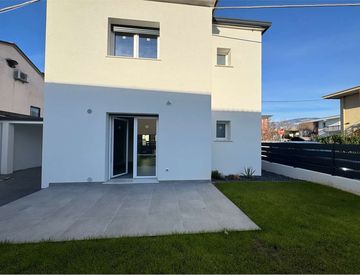 Circondata da un'area esterna curata che avvolge l'abitazione si trova ingresso che si apre ampio e luminoso soggiorno, cucina abitabile separata con accesso diretto al giardino, bagno di servizio per gli ospiti e disimpegno con vano tecnico.