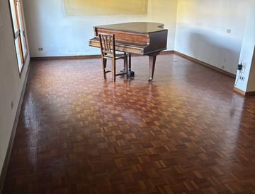 Collegato internamente, troviamo al piano terra il garage, lavanderia/bagno, altre 3 stanze abitative con altezza 2.70 mt ed una luminosa veranda vetrata, con vista verso il verde.