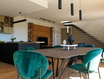 piano terra: ingresso su ampia zona giorno molto luminosa grazie alle ampie vetrate che permettono alla luce naturale di entrare ed illuminare tutta la stanza, angolo cottura, anti bagno e bagno.