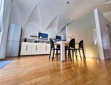 L'accesso avviene attraverso un androne sontuoso con soffitti altissimi, dal quale si dipartono ingressi separati per l'ala del palazzo in cui si trova l'abitazione, rafforzando il senso di sicurezza e comfort abitativo.