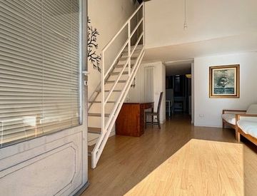 Al piano terra troviamo un’accogliente zona giorno con cucina separata, caratterizzata da ambienti luminosi e ben distribuiti, che si aprono direttamente sul secondo ingresso interno del condominio. Sempre al piano terra è presente il bagno con box doccia. Salendo al piano superiore, troviamo la zona notte, soppalcata, intima e ben separata rispetto agli spazi diurni.
