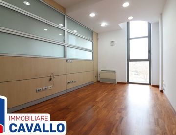 In origine la pianta prevendeva un ambiente unico senza divisioni interne, il locale è stato personalizzato dalla proprietà con pareti divisorie ed è composto da un ingresso con la possibilità di creare un angolo per accogliere i clienti, due ambienti ufficio, un ampio spazio finestrato dove creare diverse postazioni di lavoro, un terzo locale da utilizzare come ufficio, un ripostiglio, uno spogliatoio e un bagno.