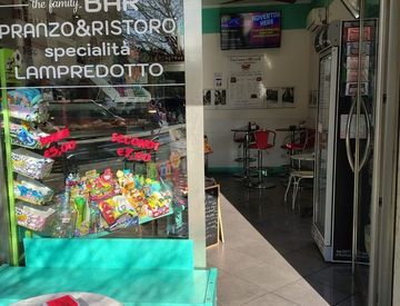 Area bar con bancone accessoriato per somministrazione e conservazione di bevande e alimenti
