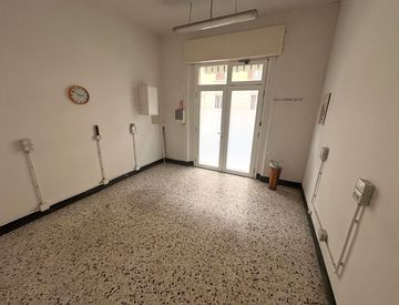 In palazzo degli anni '60, al piano terra, ampio locale commerciale C/1 di circa 45 mq in buone condizioni composto da due vani, di cui il principale con sporto su strada, servizio igienico finestrato, ripostiglio e cantina al piano interrato.