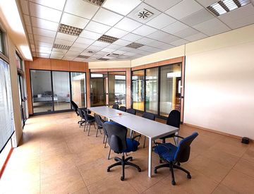 La soluzione è ubicato al primo piano di un fabbricato dotato di ascensore e scale mobili, una volta superato l'ingresso ci ritroveremo di fronte alla zona reception che porta a tutti vari uffici facenti parte dell'immobile. L'ufficio è composto da quattro stanze, la reception, la sala riunioni, due bagni con antibagno, un bagno disabili, un archivio e due ripostigli, di cui uno ad uso cucina e uno ad uso infermeria.