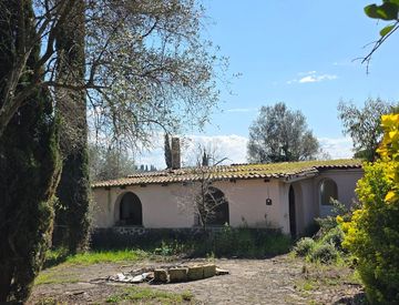 La proprietà include un annesso residenziale di circa 110 mq ed è circondata da un ampio terreno di circa 37.000 mq, tra bosco, ulivi e alberi ornamentali.