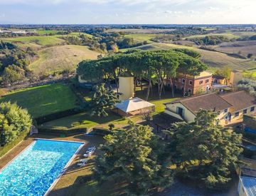 Sono presenti un magnifico casale, all’interno della splendida cornice di un parco privato di circa 5.000 mq con piscina 25 metri, campo da tennis, campo di calcetto illuminati e ampio parcheggio.
