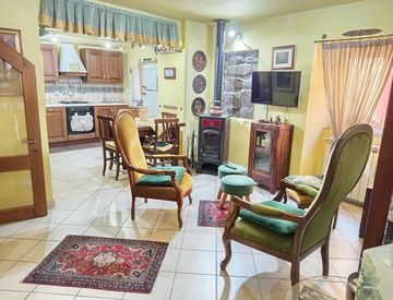 Il tetto a vista in legno lamellare conferisce un'atmosfera calda e accogliente. Il riscaldamento è garantito da due stufe a legna e da un impianto a metano, per il massimo comfort.