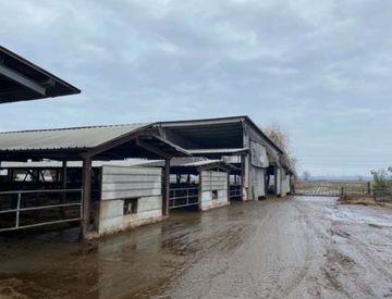 Corpo A - stalla costituita da corpo principale con corsia di alimentazione, sala mungitura oltre a tettoie, una vasca, un tunnel, una trincea, due depositi e un box.