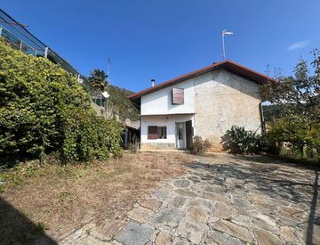 La parte esterna ospita un ampio giardino di 530 mq raggiungibile tramite la scala, completamente recintato con accesso carraio dalla strada sopra l'abitazione. Dal cancello del giardino si accede al bosco di proprietà di circa 1500 mq