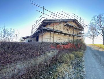 1) Intero rustico di oltre 520 mq con giardino di oltre 2000 mq. La soluzione già accatastata presenta 4 camere da letto, 1 cucina, 1 cantina ed un locale sgombero, ma una volta ultimata la soluzione può arrivare ad avere fino a 6 camere da letto.
