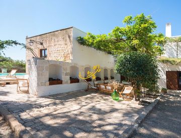 La masseria si sviluppa su circa 700 mq interni, circondata da 12.000 mq di uliveti e giardini mediterranei e ciliegeti. Al piano terra, ampia cucina con zona pranzo e due ampi living con volte a botte con un grande camino, e bagno. Lo spazio dialoga con l’esterno, dove la piscina è incorniciata da alberi secolari, aree barbecue attrezzate e zone relax ideali per giornate all’aperto o eventi privati.