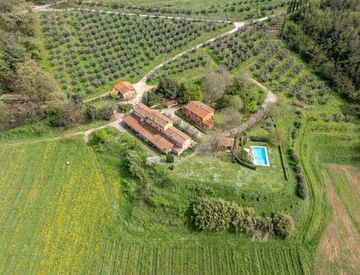 Immersa nella suggestiva campagna toscana, questa proprietà di circa 17 ettari incanta i sensi con i suoi uliveti sinuosi, i vigneti ondulati e i frutteti rigogliosi. Un'oasi di tranquillità e bellezza, arricchita da un pittoresco laghetto di proprietà e da maestosi viali d'ingresso che invitano a esplorare ogni angolo di questo paradiso terrestre.
