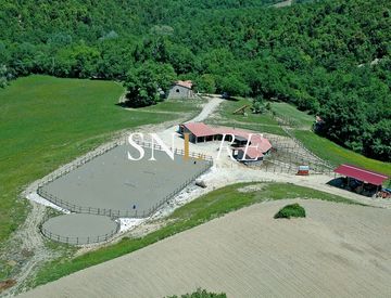 Completano la proprietà 5 ettari di terreno con pozzo per irrigazione, una piscina semi-interrata con ampio solarium di circa 110 mq e un piccolo parco giochi, elementi che rendono questo casale un luogo ideale sia per famiglie che per attività ricettive.