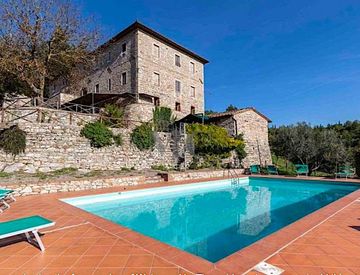 Il borgo, composto dalla villa principale, due edifici esterni, una chiesa consacrata, la piscina e la pool house, è circondato da boschi e si trova in posizione collinare, offrendo splendide viste sul paesaggio circostante. L’esposizione è eccellente, con il sole presente dall’alba al tramonto.