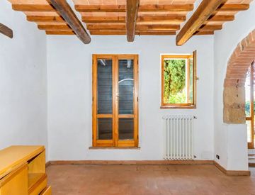 Al piano terra: ingresso, soggiorno, ripostiglio, zona pranzo, cucina, bagno, ripostiglio principale e locali annessi alla cucina con bagno privato. Il pavimento è in cotto toscano, travi soffitto a vista. Porte in legno massello tipiche Toscane.