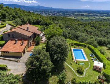 Antico casolare in pietra di circa 400 mq, completamente ristrutturato e posto sulla sommità di una collina in posizione panoramica e dominante nel comune di Civitella in Val di Chiana, a pochi minuti dal suggestivo centro storico. La proprietà vanta una vista aperta sul paesaggio circostante ed è immersa in circa 35 ettari di terreno, garantendo assoluta privacy e tranquillità, con una piscina perfettamente inserita nel contesto naturale. Il complesso...